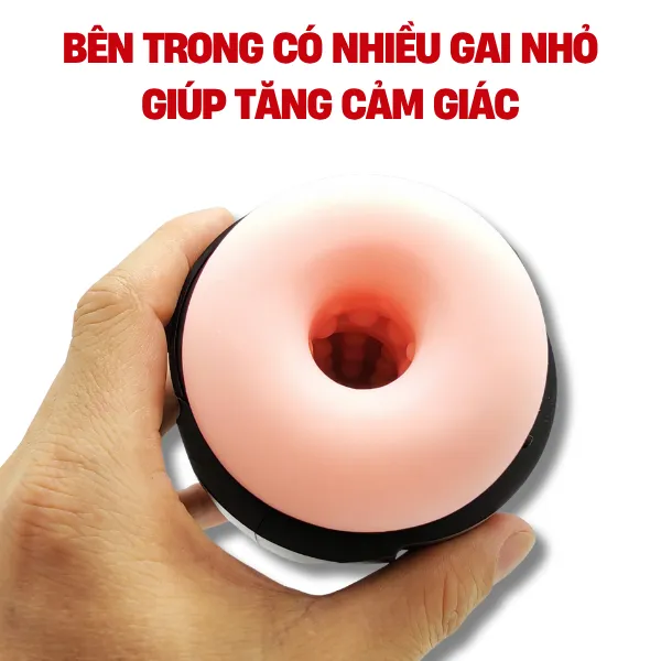 Phần miệng cốc thiết kế hình tròn mô phỏng lỗ hậu môn, bên trong bố trí nhiều hạt massage nhỏ li ti trải dọc toàn thân ống, giúp tăng ma sát và khoái cảm mỗi khi máy hoạt động. Kích thước 20x7cm, vừa vặn, dễ cầm nắm và sử dụng một tay.