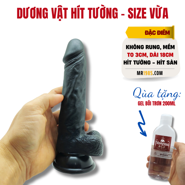 Dương Vật Giả 18cm Hít Tường Cao Cấp – Trải Nghiệm Chân Thật, Tặng Kèm Gel 200ml