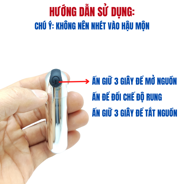 Bước 2: Bật chế độ khởi động, đầu còn lại bạn có thể di chuyển xung quanh từ bìu dái, lên đến đầu dương vật. Hoặc di chuyển nơi kích thích bạn mong muốn như vú, lưu ý: không nhét trứng rung vào hậu môn.