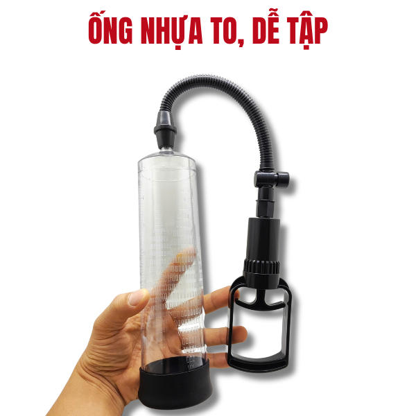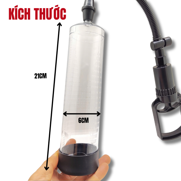 Ống bơm hút chân không: Chế tạo bằng công nghệ nano, chất liệu nhựa cao cấp, trong suốt, dễ theo dõi kết quả. Kích thước lớn hơn so với máy tập thông thường. Ống to đường kính 6cm, dài 21cm – dễ tập hơn cho người có kích thước lớn.