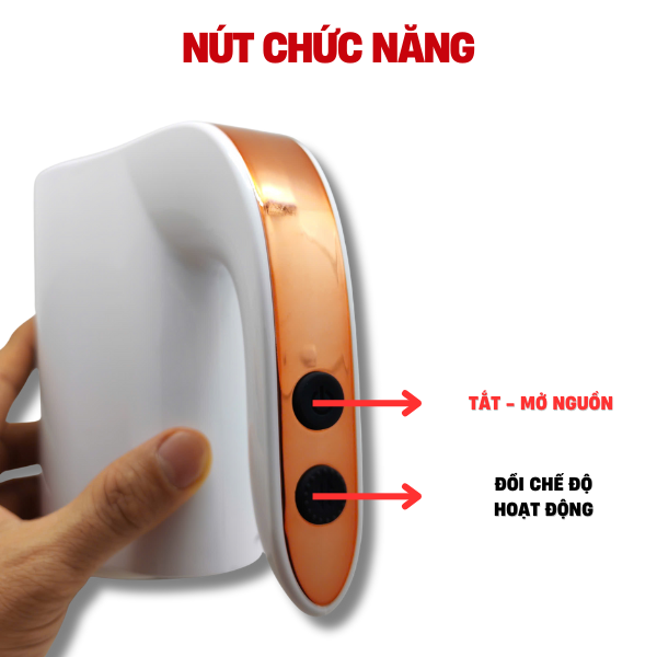 Điều khiển: Nhấn giữ nút nguồn để khởi động. Sử dụng nút chức năng để thay đổi 10 chế độ xoay/thụt theo ý thích.