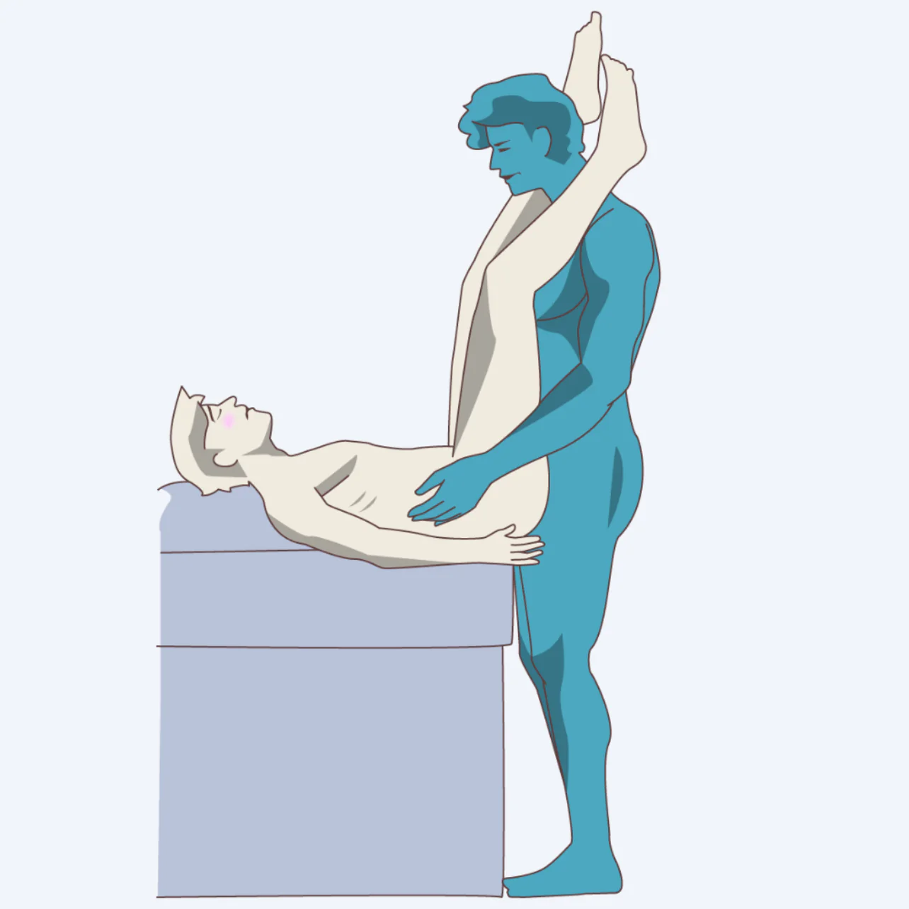 Tư thế nằm nghiêng (Spoons): Hai người nằm nghiêng cùng chiều, tư thế này tạo sự gần gũi và độ thâm nhập vừa phải, ít gây áp lực lên cơ vòng.